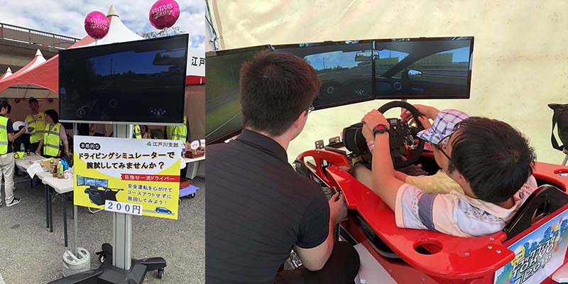 東京都トラック協会 江戸川支部様のブースにレーシングシミュレーターを設置しました。